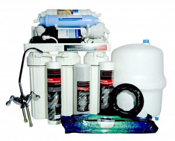 Система очищення води Filtrons Classic 6 - ти ступенева на основі зворотного осмосу призначена для доочищення води в побутових умовах для її подальшого використання для пиття, приготування їжі та інших цілей. Являє собою систему, яка видаляє до 99,9% всіх домішок, що містяться у воді і запобігає утворенню накипу на нагрівальних приладах. Фільтрація здійснюється за рахунок проходження води під напором через напівпроникну мембрану, яка пропускає тільки молекули води і кисню.